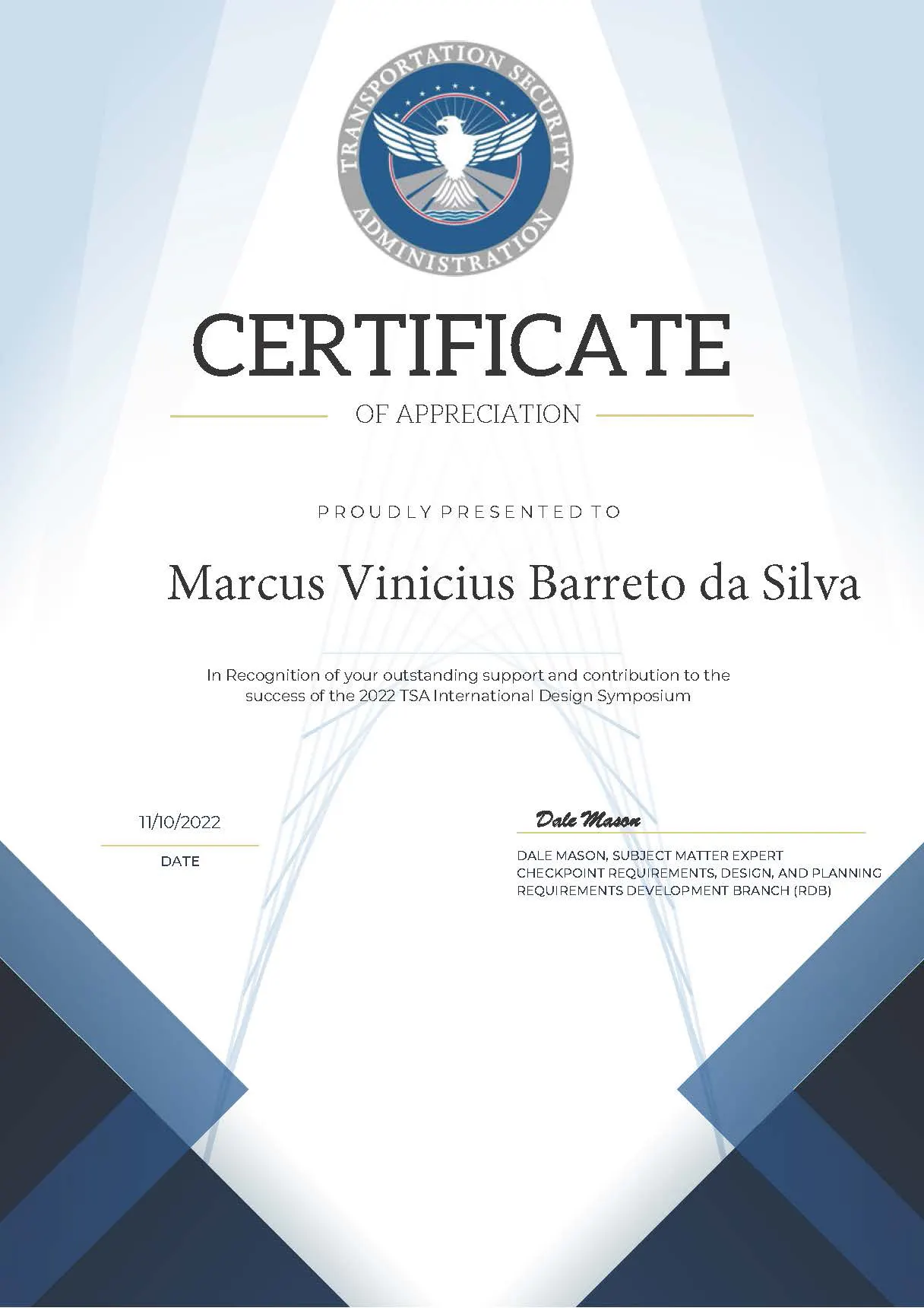 Queria parabenizá-lo pela iniciativa de desenvolver seu próprio negócio e tenho certeza que será um sucesso considerando que o Marcus é muito competente, entende muito da área de “security” nos aeroportos e principalmente pelo profissionalismo que conduz este segmento nas empresas em que atuou, inclusive com a Tristar. Estamos torcendo por ele e acreditando em seu sucesso!